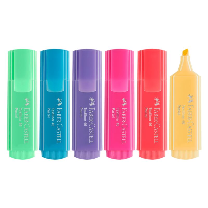 *O Marca Texto Textliner 46 da Faber-Castell possui corpo ergonômico e a tinta não passa para o outro lado do papel.
